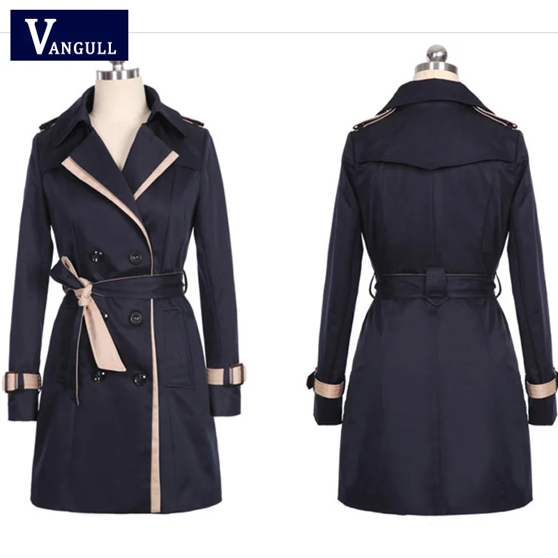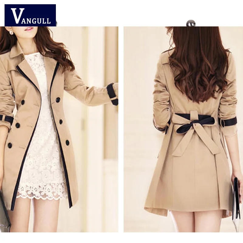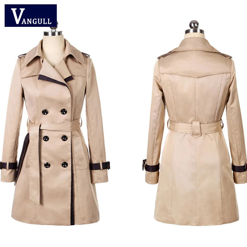 Best Promo Vangull 2019 Fashion Women Thin Trench Coat Turn-down Collar Double Breasted Patchwork Long Trench